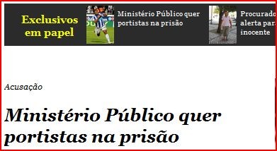 O título do CM não deixa lugar para dúvidas: o Ministério Público quer pôr os portistas na prisão. Pergunto-me: TODOS? Eu sei que não somos seis milhões, mas ainda assim é muita gente para levar para o cárcere. E se lá metessem só o Jardim?